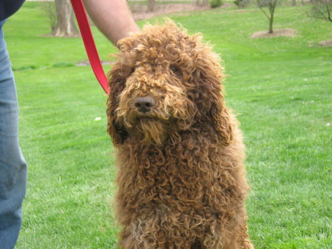 Our Chocolate Standard Poodle Seymour joined our family in November. He is an AWESOME dog with perfect conformation and excellent OFA ratings on his hips. Seymour still thinks he is a puppy and loves to bounce all over the yard. He is really affectionate and a big clown!!!! Seymour is a smaller standard weighing around 45lbs.